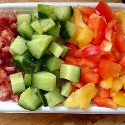 4. 彩椒西瓜沙拉:将彩椒切成小块,西瓜切成小块,加入适量的沙拉酱、盐、糖等调料,拌匀即可。这道沙拉色彩缤纷,口感丰富,是夏日里的一道开胃菜。